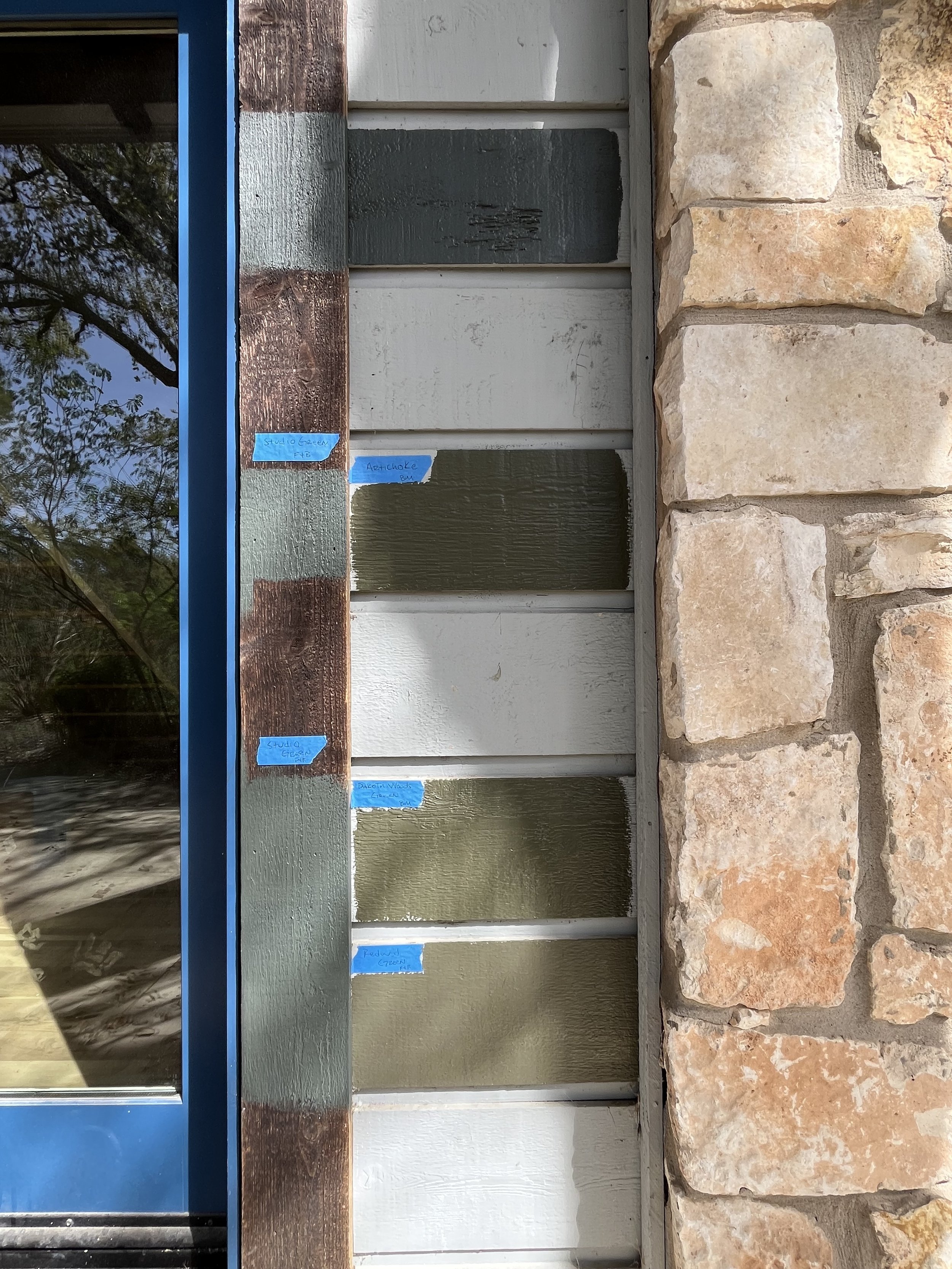 The Stone Connection: Notice how the warmth in the natural stone can make certain greens look cooler or muddier. Sampling right next to the masonry ensures the palette feels cohesive, not clashing.